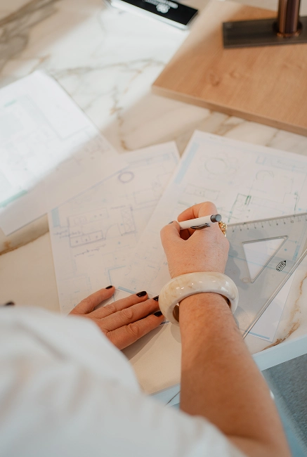 Nu trek ik naar de tekentafel. Ik maak een eerste keuken-, badkamer- of maatkastenontwerp op basis van jullie wensen, maar ik durf in deze fase ook nog zeker buiten de lijntjes te kleuren. Van mij verwacht je interessante invalshoeken, creatieve ideeën en toffe extra’s à la Pascale in een gezellig eigentijdse stijl.